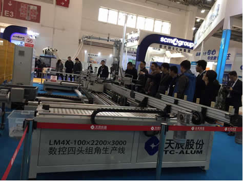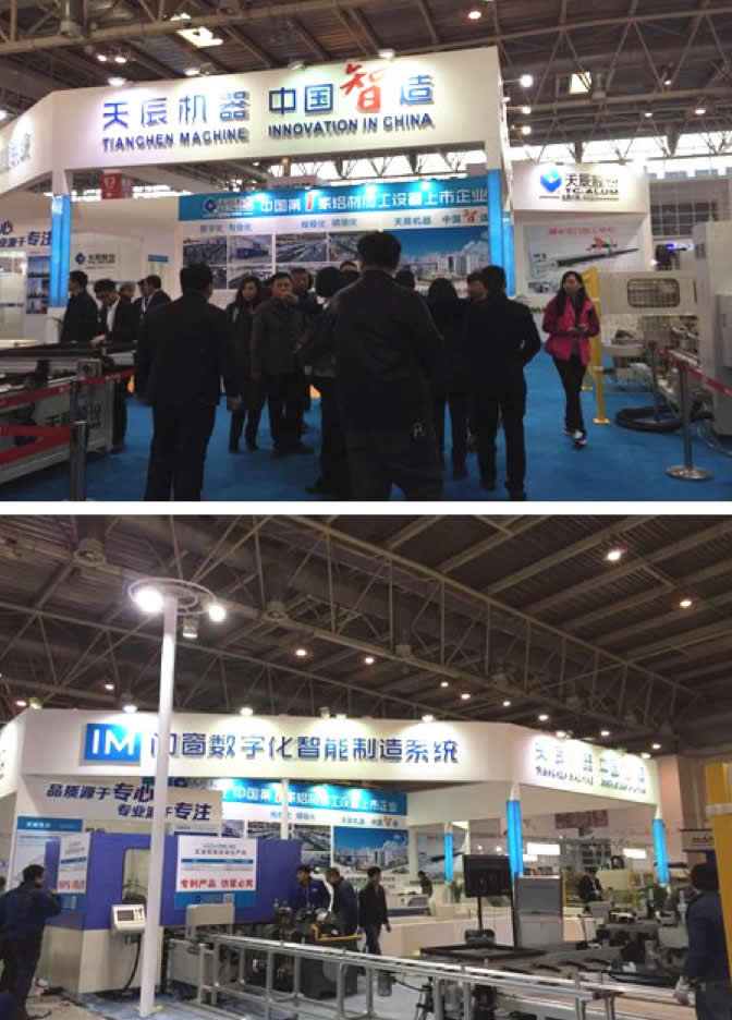 展會期間,天辰股份攜數控雙料鋸切中心、數控四頭組角生產線、數控仿型銑、高速四軸加工中心、五金鉸鏈自動生產線等高端設備強勢登陸國際展覽中心E4 306展位。近四百平米的超大展位,天辰股份傾力打造IM門窗數字化智能制造系統”,同時將手機APP與門窗加工設備進行現場數據互聯,向廣大客戶展示門窗加工的智能制造系統。展會首天就得到了行業領導的肯定及廣大客商的好評,成為了本屆展覽會的一個亮點!