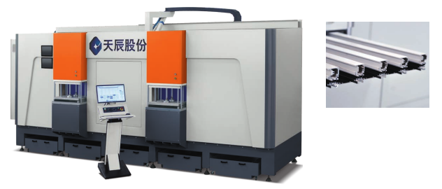 ☆?整機由七組私服電機控制,可實現全部刀具的數控自動走刀,無需人工調機,可直接調用預設好的端面程序完成加工。左右兩工作臺可加工不同截面型材,效率更高。