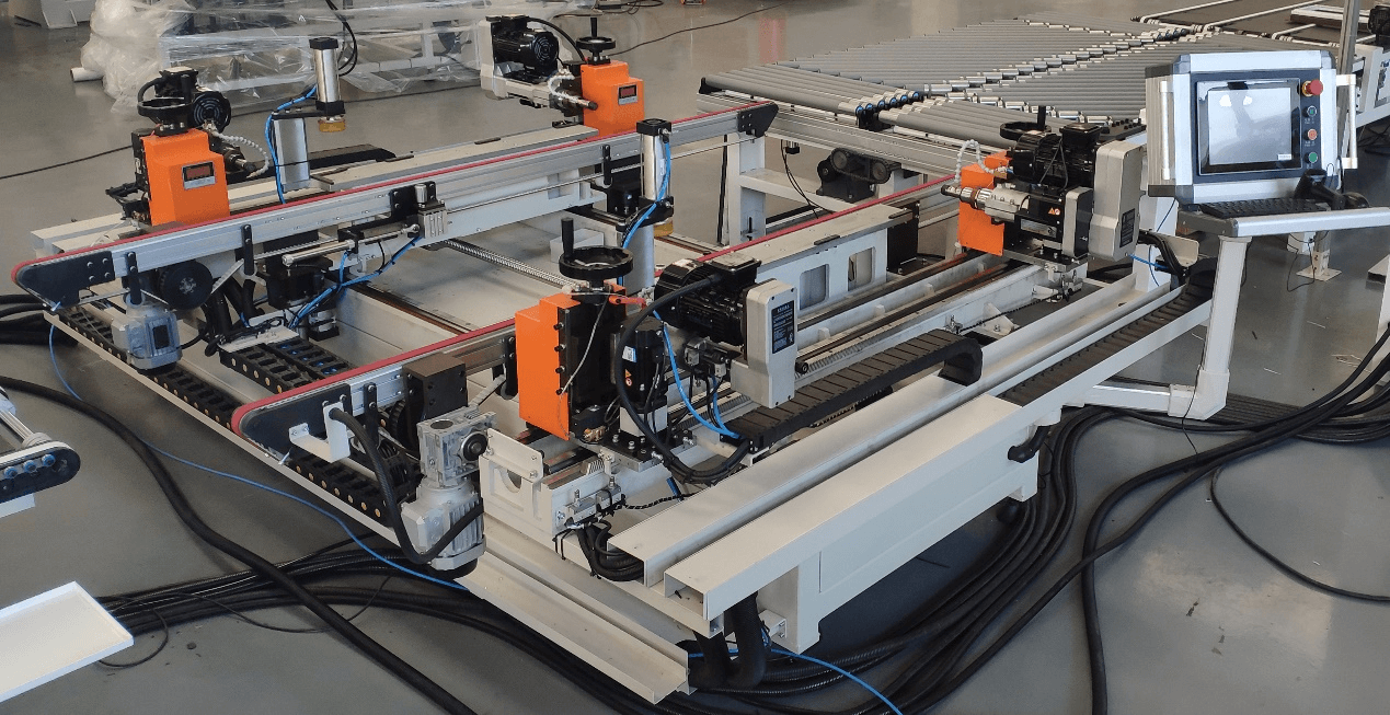 ☆?設(shè)置有自動(dòng)傳輸帶裝置,可連入窗扇組裝線使用,實(shí)現(xiàn)窗扇的自動(dòng)送入、自動(dòng)定位、自動(dòng)鉆孔;